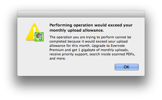 Evernote updates, wants to reindex database and then tells me that my monthly data limit doesn't allow reindexing…pic.twitter.com/gP0gdoM2