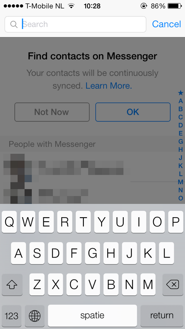 New Facebook Messenger for iOS copies the Springboard search gesture and positioning: just keep swipingpic.twitter.com/q5rz5XOUKw