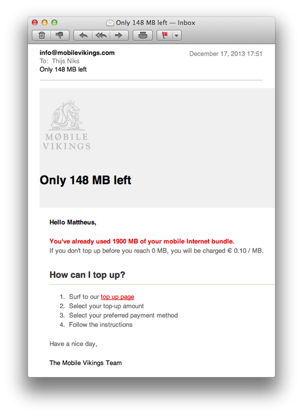 1. Mobile Vikings BE‏Verified account @mobilevikingsBE 21 Dec 2013