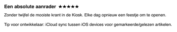 @hansdebakker Is deze recensie van u? iCloud bladwijzer sync zou moeten werken, mits ingelogd met zelfde accountpic.twitter.com/G6fYdpyGIT