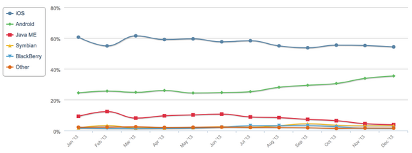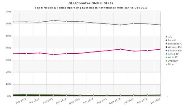 Smartphone en tablet webgebruik in Nederland in 2013, volgens Statcounter: 60% iOS, 40% Androidpic.twitter.com/kLtDoacE4v