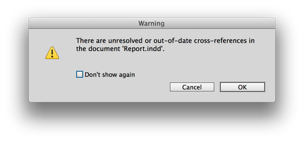 InDesign says there are out-of-date cross-references but can’t click the Update Cross-Reference menu item. Now what?pic.twitter.com/lXb2x6v9SG