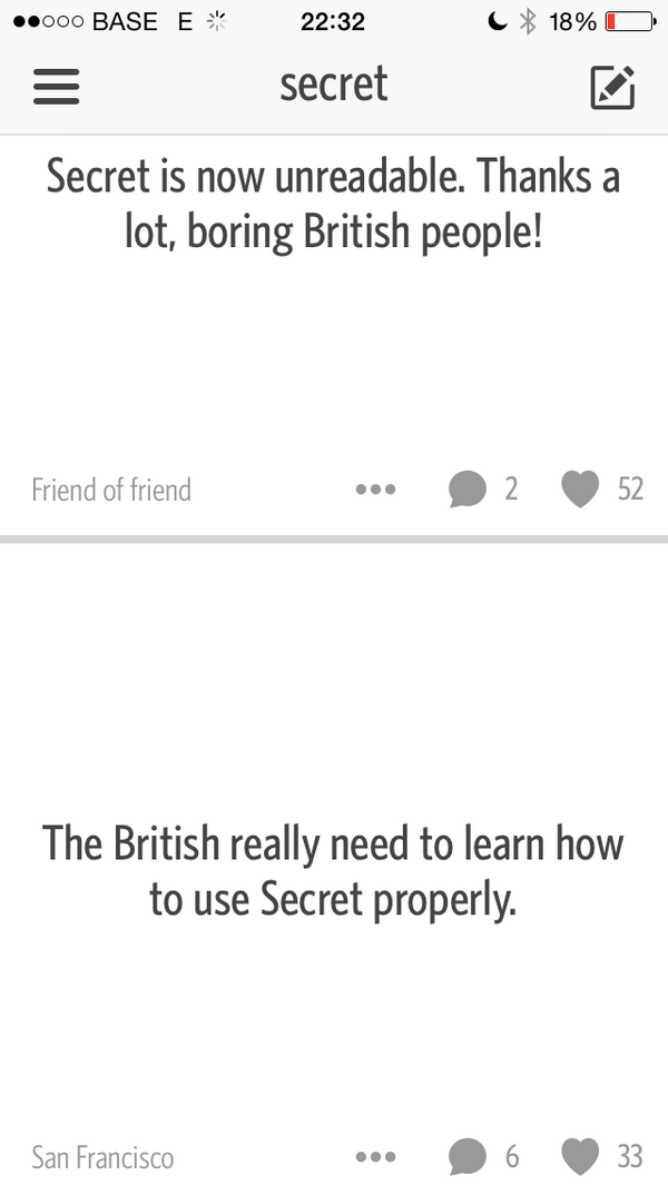 This true: the Brits on Secret are boringpic.twitter.com/0srkMuotGu