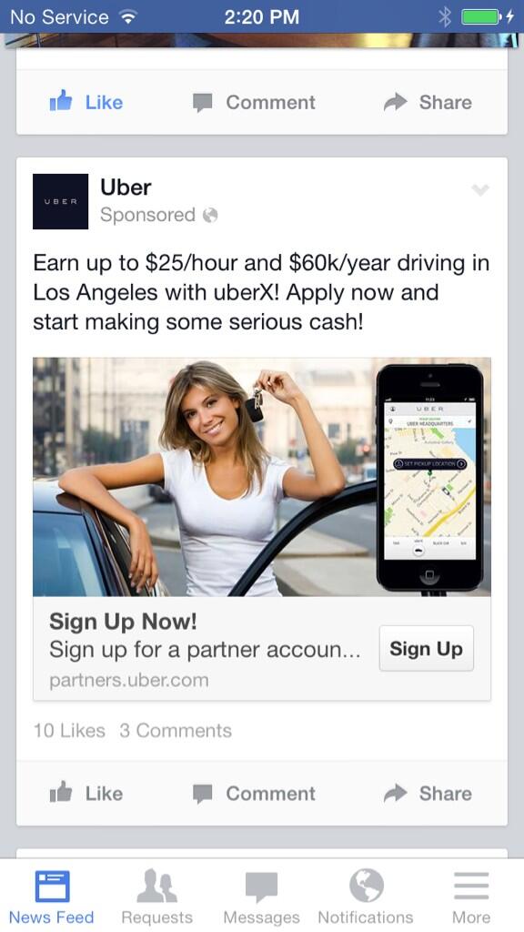 @felixsalmon Seen this Uber LA ad on Facebook? https://twitter.com/UberXKing/status/447365695354191872 … $60k/year for “up to $25/h” is 48h+/week if you work 50 weeks