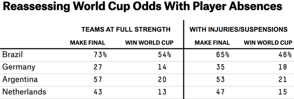 Di Maria’s Injury Makes Argentina-Netherlands Almost Even http://fivethirtyeight.com/datalab/di-marias-injury-makes-argentina-netherlands-almost-even/ …pic.twitter.com/dJLICQbBQy