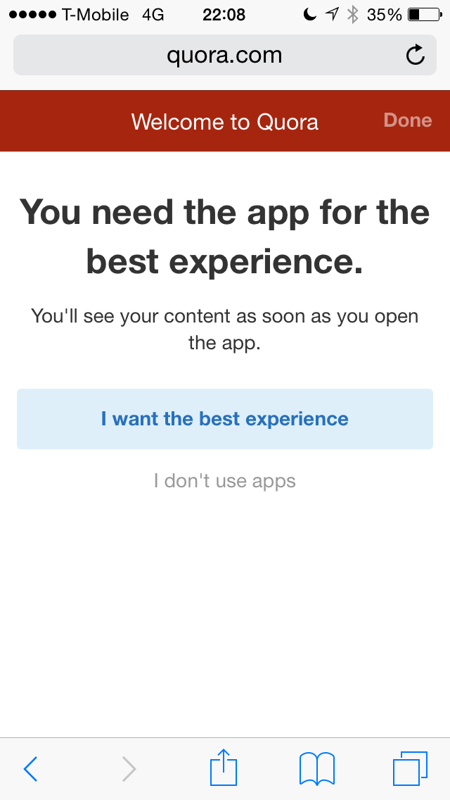 Quora’s website does not allow you to read an answer on their website, but forces you to install the app.pic.twitter.com/6OuDYgzPeU