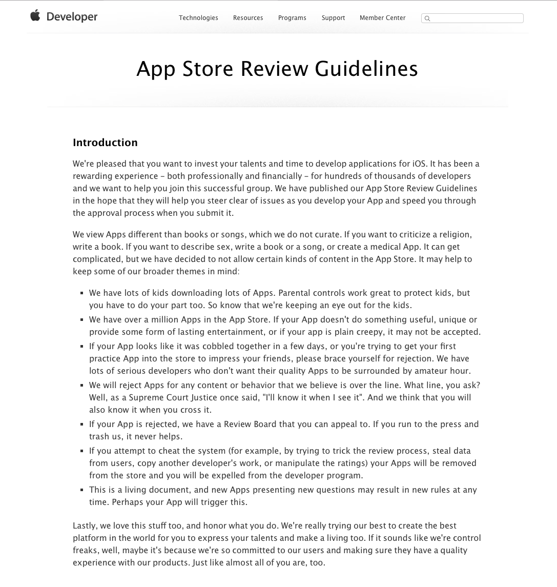 App Store Review Guidelines intro is the most human writing I have seen from Apple in a while https://developer.apple.com/app-store/review/guidelines/ …pic.twitter.com/aHgri5QGud