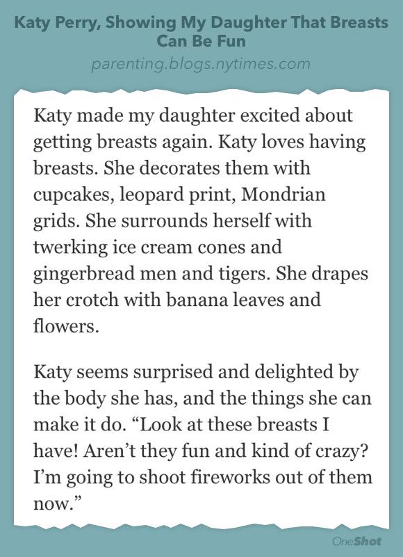 Katy Perry, Showing My Daughter That Breasts Can Be Fun http://nytimes.com/blogs/parenting/2015/04/17/katy-perry-showing-my-daughter-that-breasts-can-be-fun/ …pic.twitter.com/w9esgrV64q