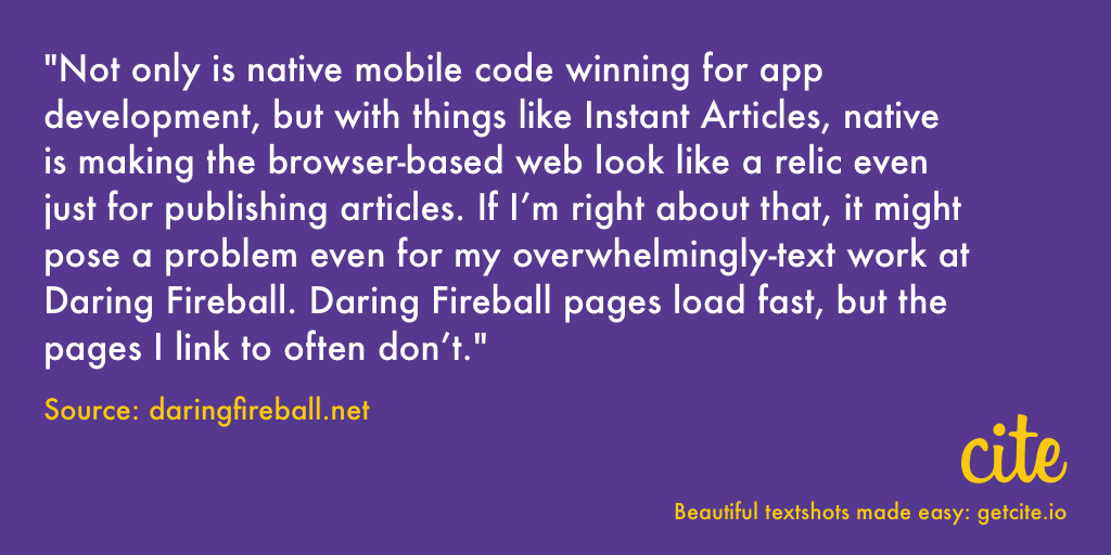 Gruber on Instant Articles http://daringfireball.net/2015/05/facebook_instant_articles …pic.twitter.com/VDyVVe6EGQ
