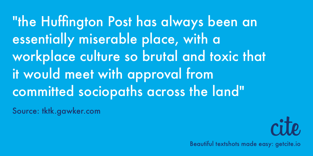 Hell Is Working at the Huffington Post http://tktk.gawker.com/hell-is-working-at-the-huffington-post-1707724052 … via @justusbrunspic.twitter.com/FNeA0t32dg