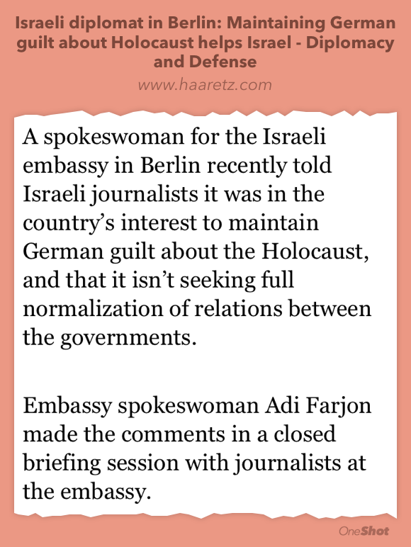 Israeli diplomat in Berlin: Maintaining German guilt about Holocaust helps Israel http://www.haaretz.com/news/diplomacy-defense/.premium-1.662962 …pic.twitter.com/aP3qIDaMVW