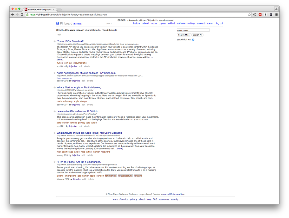 @Pinboard Full text search seems to throw an errorpic.twitter.com/OtBm0XmL7Q