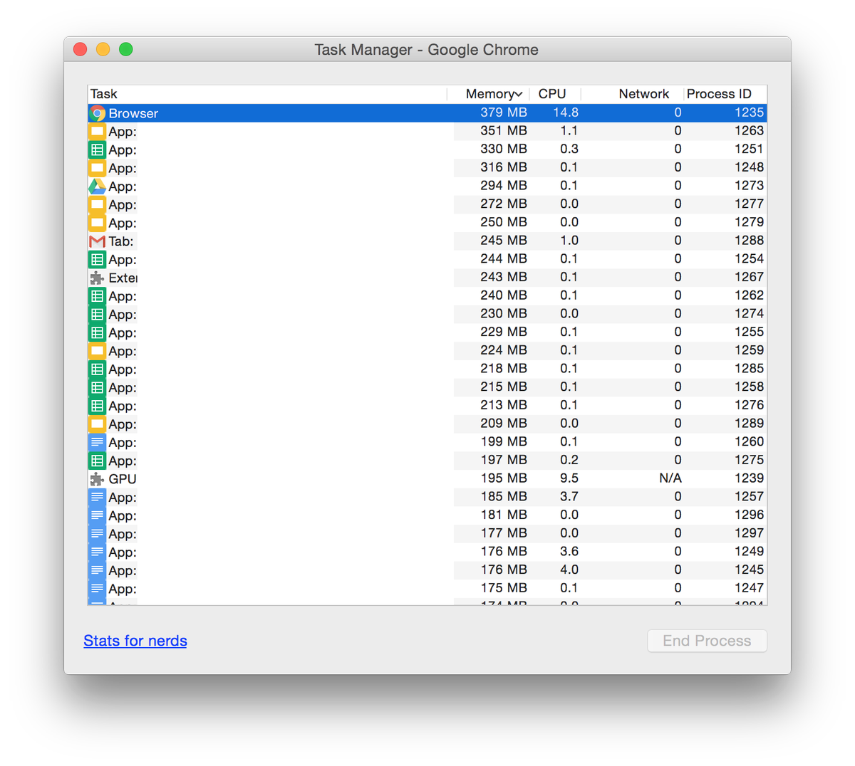I love collaborating in Google Docs, but damn it’s so resource intense. Any given document is over 150 MB in memory.pic.twitter.com/fEicZsAkJ2
