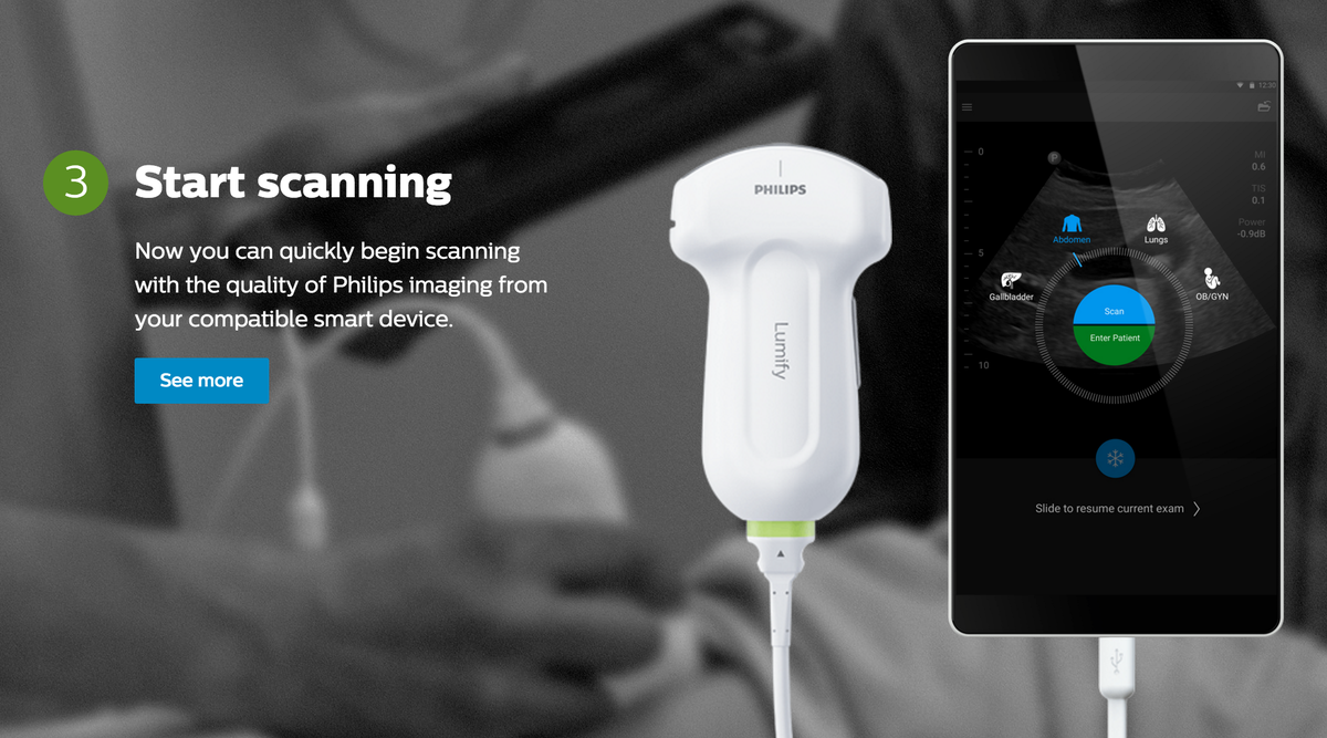 Philips Lumify enables ultrasound scans from a phone. Interesting to see it’s Android only https://www.lumify.philips.com/ pic.twitter.com/ZE8Exlz2P0