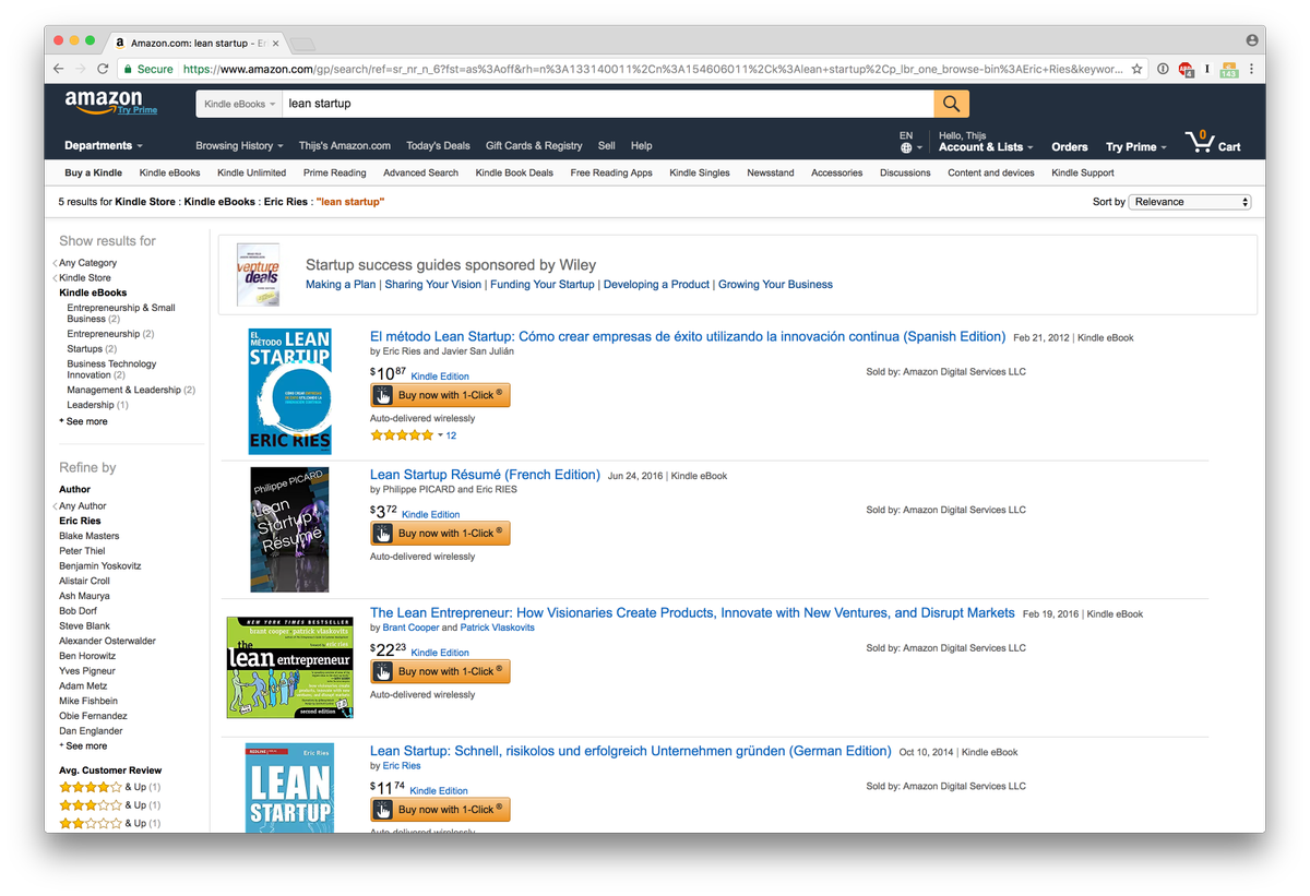 @ericries Any idea why I can only find the German, Spanish, and French Kindle version of your Lean Startup book? https://www.amazon.com/gp/search/ref=sr_nr_n_6?fst=as%3Aoff&rh=n%3A133140011%2Cn%3A154606011%2Ck%3Alean+startup%2Cp_lbr_one_browse-bin%3AEric+Ries&keywords=lean+startup&ie=UTF8&qid=1491819806&rnid=133141011 …pic.twitter.com/uZeR9BsLNn