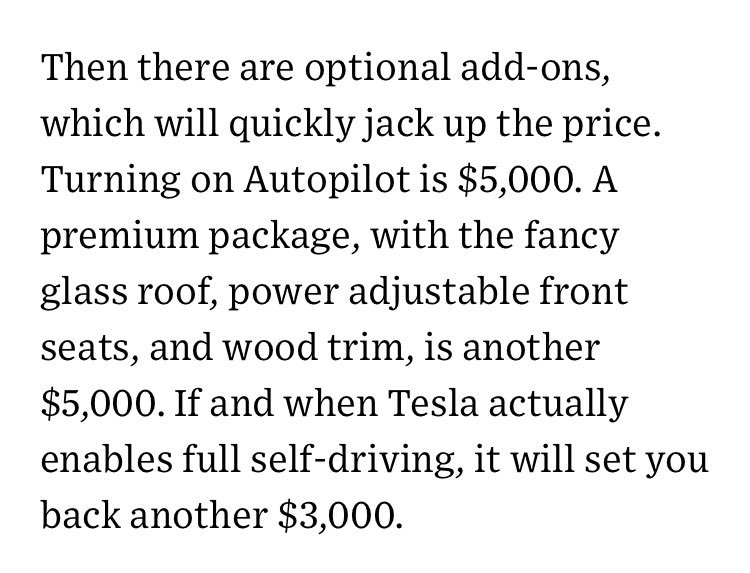 Tesla charging for Autopilot is like Apple charging for TouchID https://www.wired.com/story/i-drove-a-tesla-model-3/ … cc @elonmuskpic.twitter.com/Pmzecr7kQ2