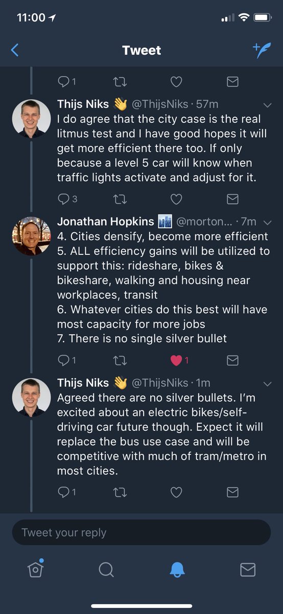 4. Cities densify, become more efficient 5. ALL efficiency gains will be utilized to support this: rideshare, bikes & bikeshare, walking and housing near workplaces, transit 6. Whatever cities do this best will have most capacity for more jobs 7. There is no single silver bullet