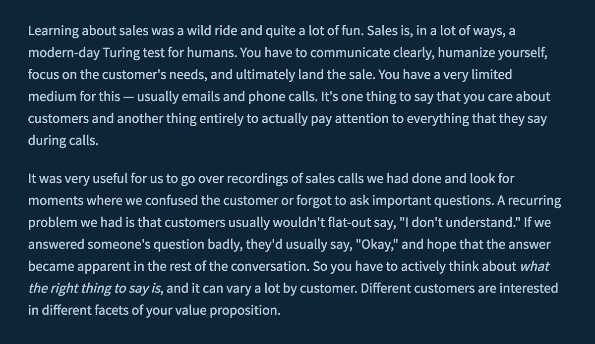 “Sales is a modern-day Turing test for humans” https://www.indiehackers.com/businesses/coderpad …pic.twitter.com/sbaKVQ0WWs