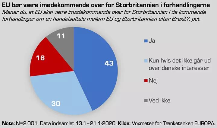 Står det til danskerne, skal EU være imødekommende over for briterne i forhandlingerne om det fremtidige forhold. Det viser vores seneste måling blandt 2.000 danskere.