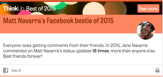 Aww, that's sweet! https://twitter.com/mattnavarra/status/677532168743206912 … Find out your biggest Facebook fan of the year, too: https://thinkup.com/