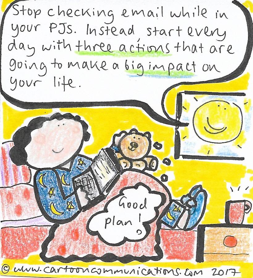 Stop checking email while in your pyjamas. Instead, start every day with three actions that are going to make a big impact on your lifepic.twitter.com/ROfW70sceO