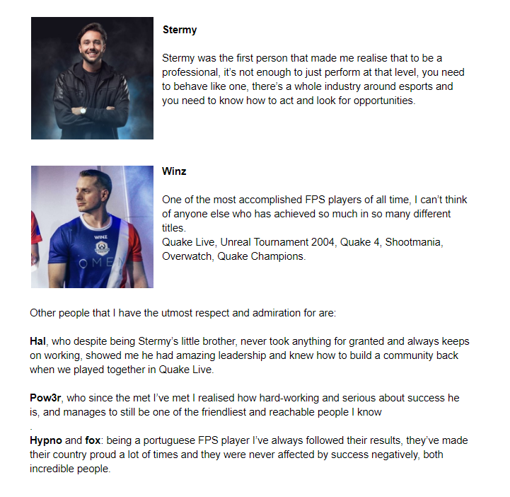 Washed up semipro of several games, like Quake Live, Overwatch, Quake Champions and Diabotical