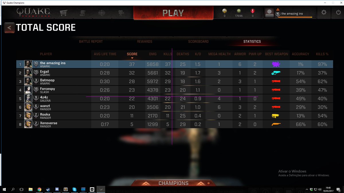 So how broken is pummel in Quake Champions? I shouldn't be winning FFA's by running around instagibbing people, should I?pic.twitter.com/FICXo4vvFM