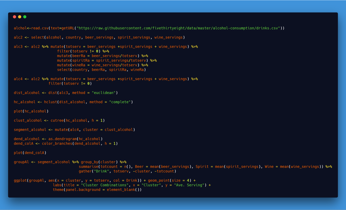 #TidyTuesday dataset to apply what I had learned. I wanted to use Hierarchical clustering in order to find countries with similar alcohol tastes.pic.twitter.com/ytkZHnPqbr