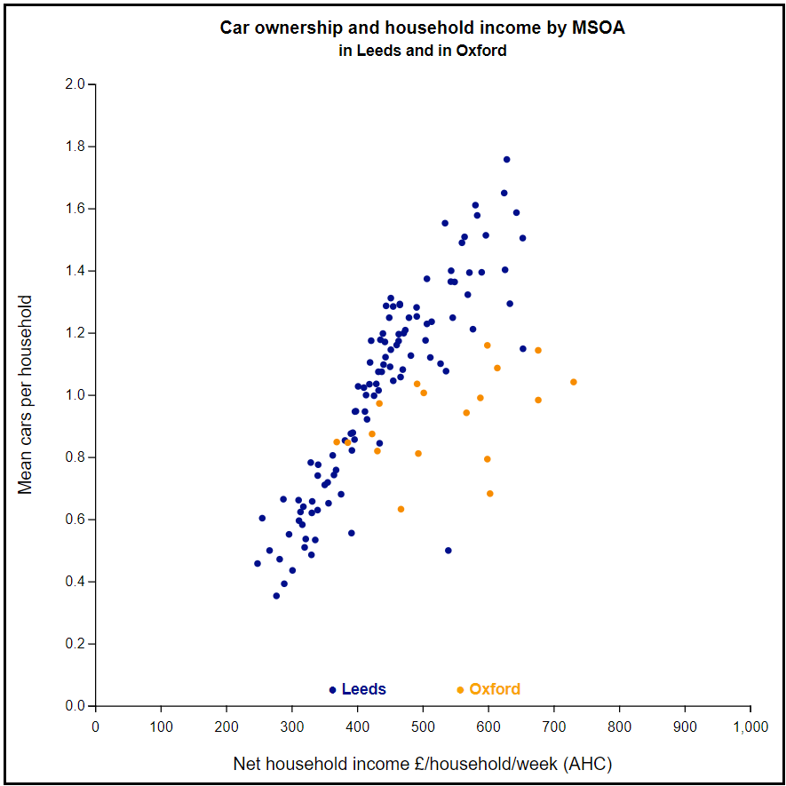 TLDR: Pretty everywhere in the UK the number of cars a household owns is determined by how many they can afford. Any place where the residents start owning fewer cars than they can afford,... very soon local shops start earning more, rents increase, house prices go up, etc...