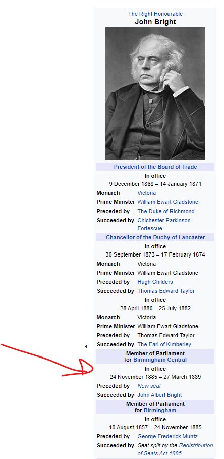 His pal John Bright gets to be an MP in his infobox so, since I've never done one of these before, I'll just copy that. (and change it).pic.twitter.com/Xuxzp5zVga