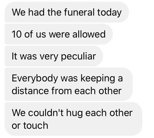 With permission, as sharing details of funerals in the family of two friends. Neither death was caused by COVID but both funerals were shaped by its wretched alienation. About an American friend’s mompic.twitter.com/p7MbxKjoda