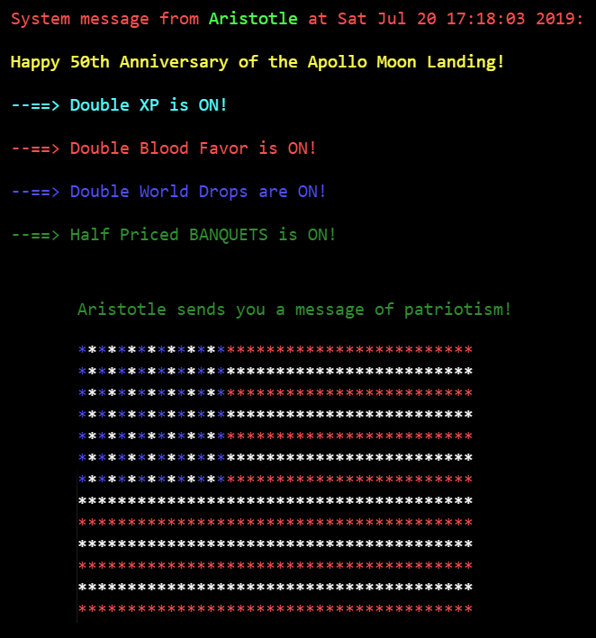 Happy 50th Anniversary of the Apollo Moon Landing! --==> Double XP is ON! --==> Double Blood Favor is ON! --==> Double World Drops are ON! --==> Half Priced BANQUETS is ON!pic.twitter.com/lmy3muAnZa