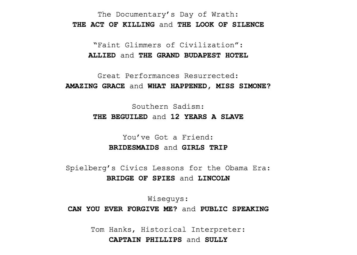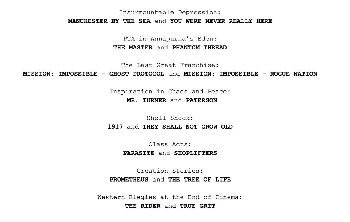 Ok, here's a shot at a list. Analyzing everything I saw in 2010s, I found it to be a cinematic decade of counterparts and duality. Here were my favorites, arranged as 32 double features I would most highly recommend:pic.twitter.com/PVunn6TsQt