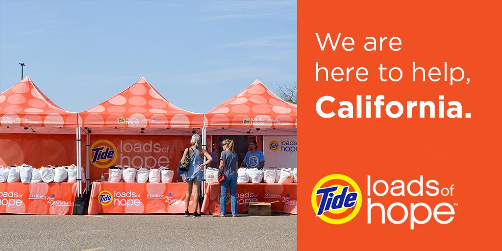@tide Loads of Hope with@M25M_org are in California to help those effected by The Camp Fire. In addition to free laundry services they are distributing P&G personal care kits containing products from@Always,@Crest,@Ivory,@OldSpice,@Pantene &@SecretDeodorantpic.twitter.com/CDoSEAy3Av