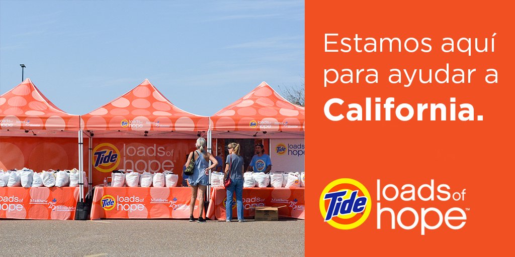 Tide Loads of Hope está para ayudar. Estamos en Chico y podemos lavar tu ropa gratis de 9am - 5pm en Lowes (2350 Forest Ave, Chico, CA 95928).pic.twitter.com/1XlYeOfzK8