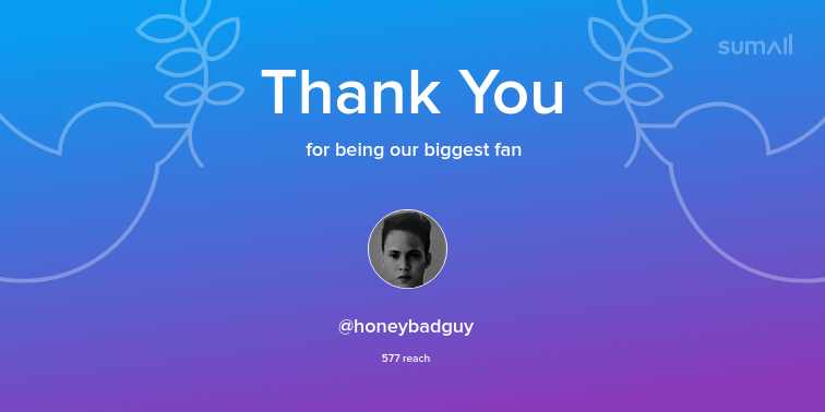 Our biggest fans this week: honeybadguy. Thank you! via https://sumall.com/thankyou?utm_source=twitter&utm_medium=publishing&utm_campaign=thank_you_tweet&utm_content=text_and_media&utm_term=dca8388eb2d5f2e54966641c …pic.twitter.com/TiZLXg1tyw