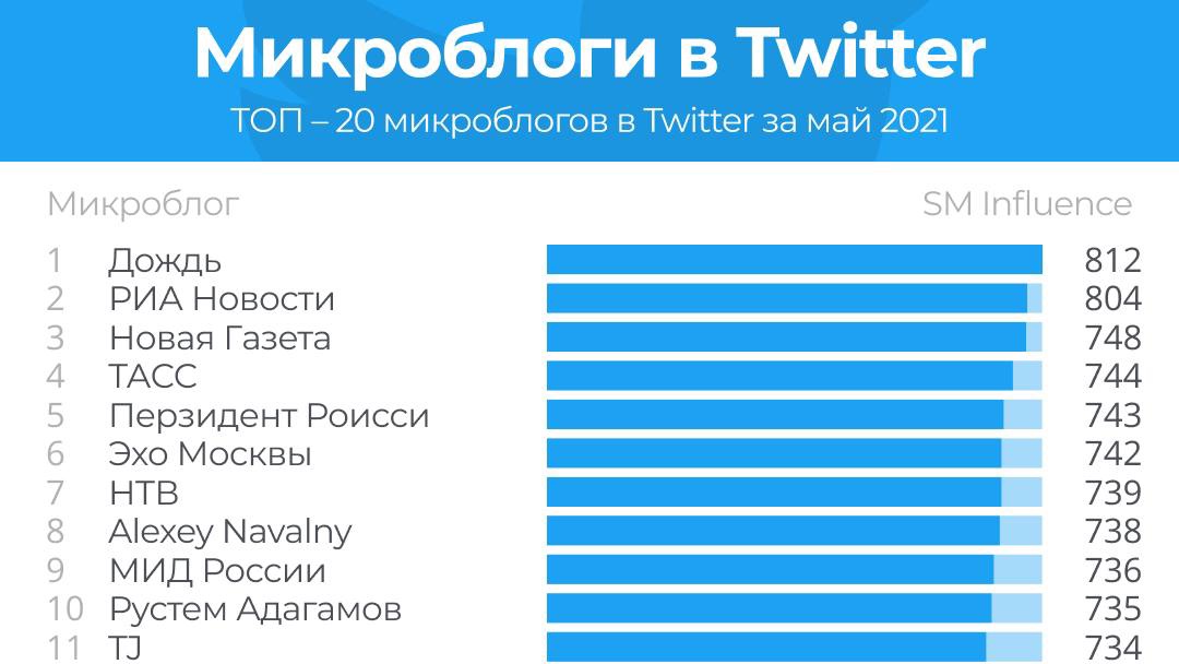 Рейтинг ТОП-20 микроблогов в Twitter в мае возглавили Дождь (