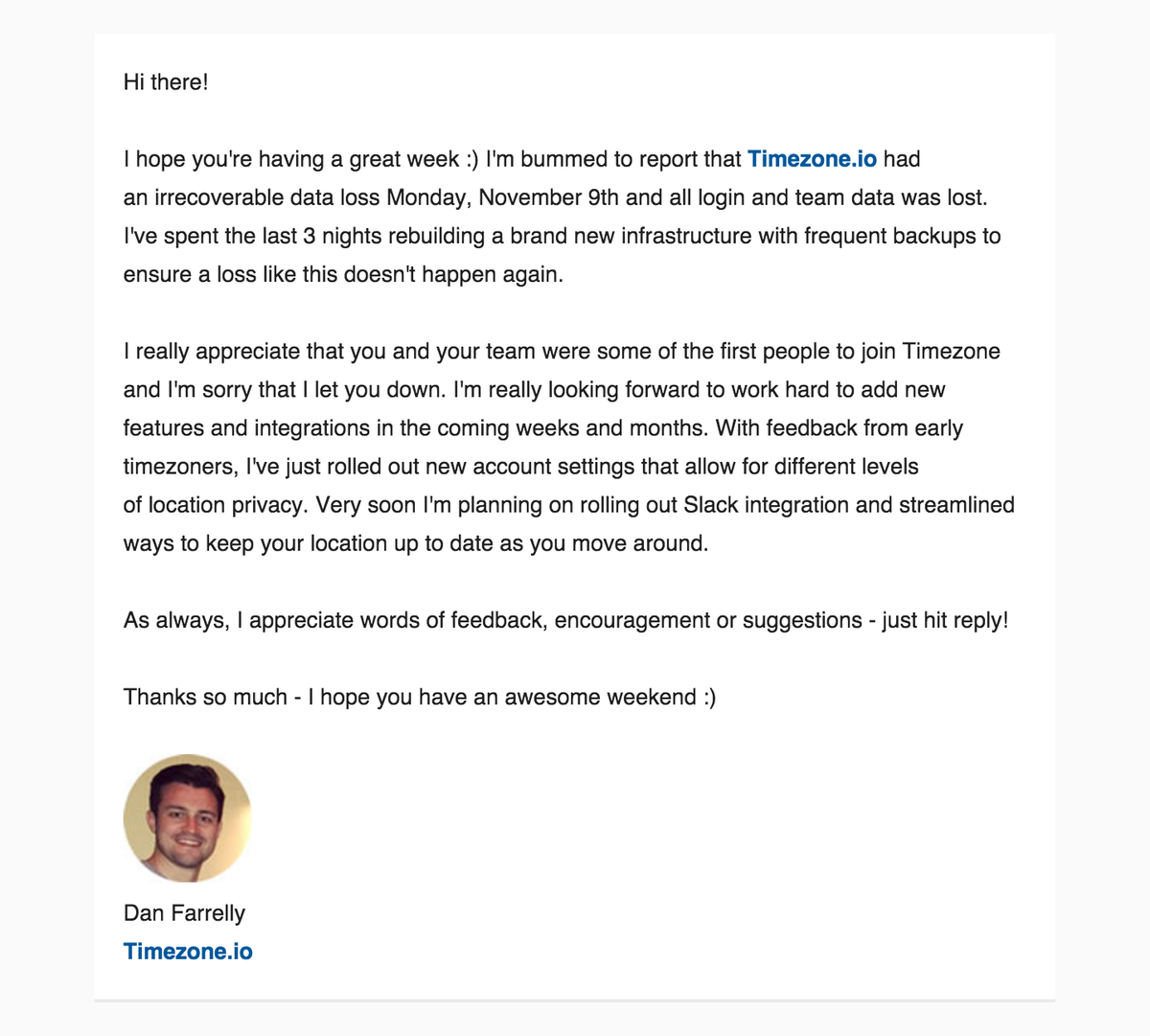 On Monday, we lost all of our data, but *today* Timezone is back and stronger than ever: http://timezone.io/signup?welcome=back …pic.twitter.com/orcQmRfyDK