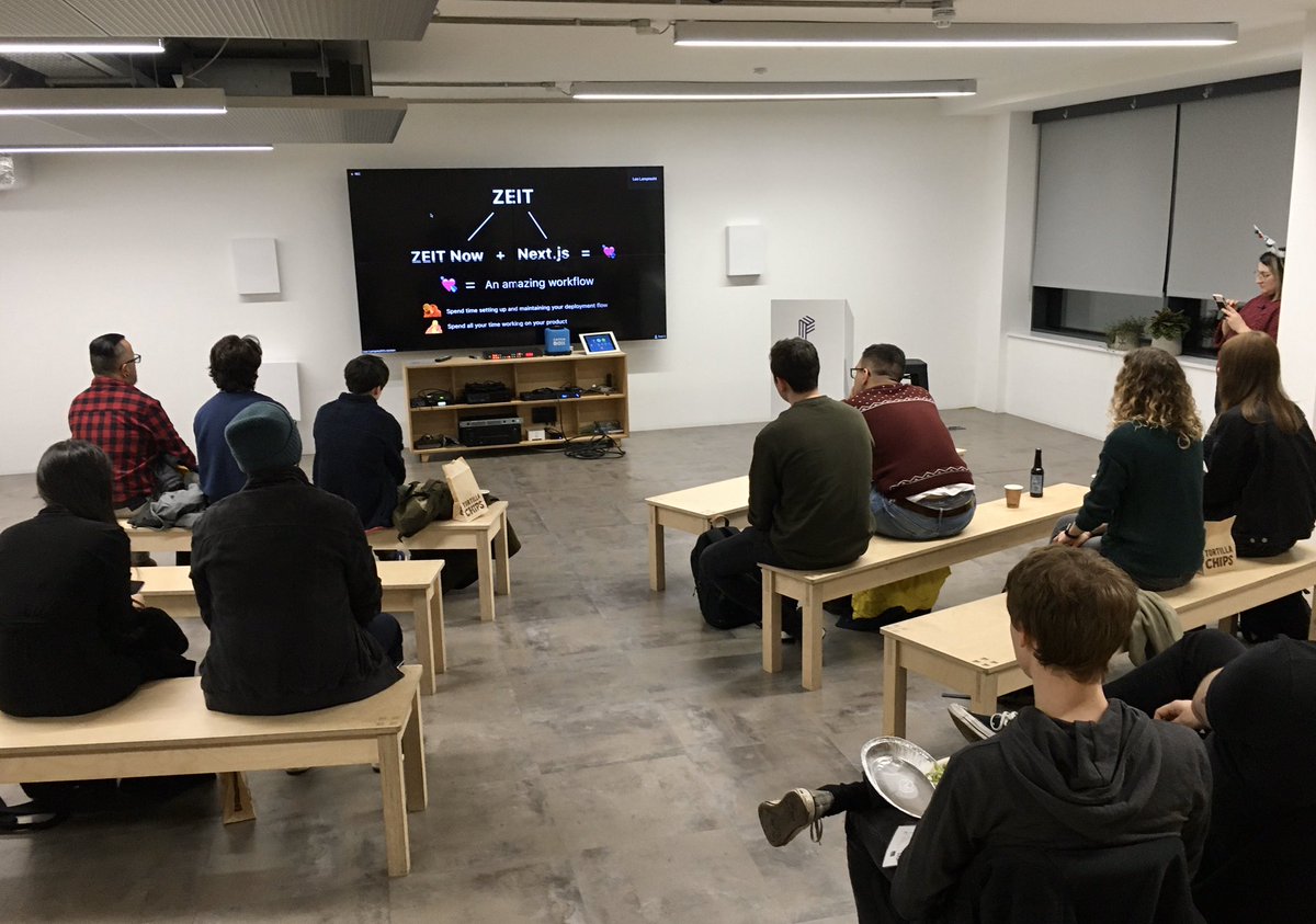 @zeithq meetup with some awesome talks on Next.js and Now. Hosted by@pusher, which I somehow did not know of