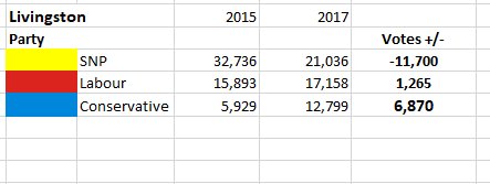 SNP losing a third of their vote, Labour stagnant, Conservatives doubling their vote, only one party in Livingston moving upwards:pic.twitter.com/lKdJTLcM0S