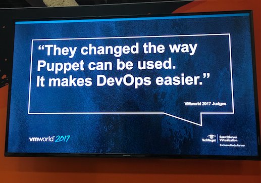 @VMworld award for agility and automation. Glad Puppet's making DevOps easier! …http://searchservervirtualization.techtarget.com/photostory/450424796/Best-of-VMworld-2017-US-Award-winners/3/Agility-and-Automation-2017-winner …pic.twitter.com/PJjBoRTcP4
