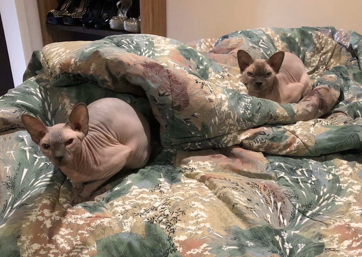 Boy goblin is unconcernedly washing himself while sitting on top of the cat bed. While magnificently ignoring the growling from girl goblin who was sleeping in there.pic.twitter.com/L8OYiiN5r7