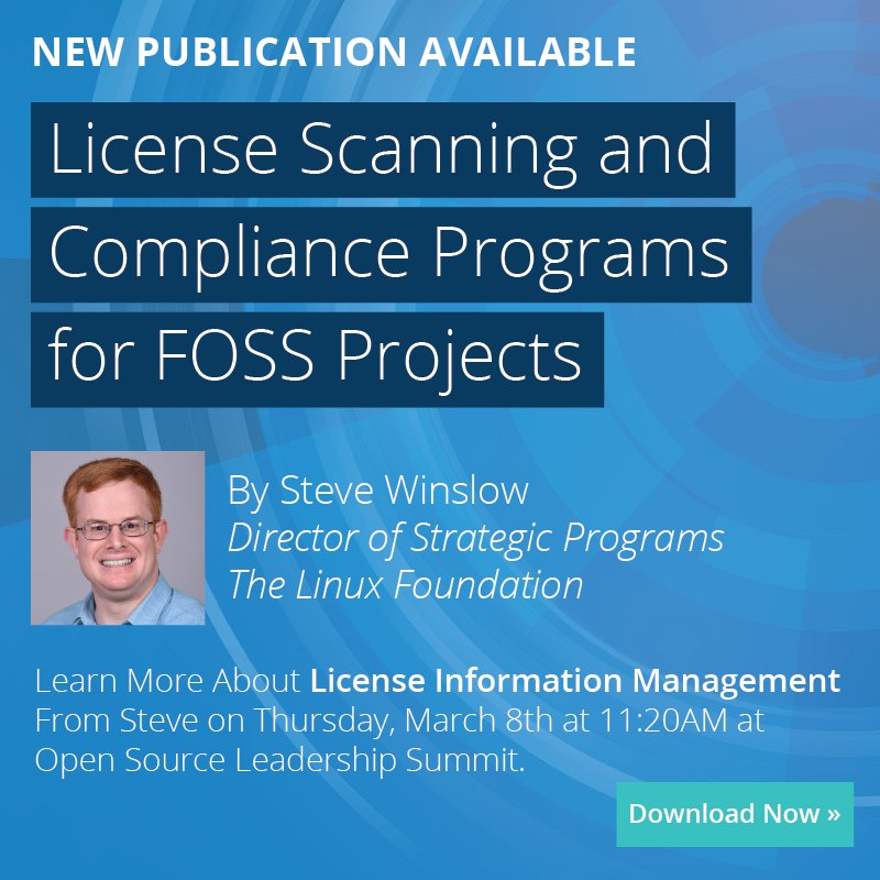 This paper, written by Steve Winslow from The Linux Foundation, describes the benefits of license scanning and compliance for open source projects and much more! Download it for FREE today: http://bit.ly/2oMk10g pic.twitter.com/OOjinF0KTc — The Linux Foundation (linuxfoundat…