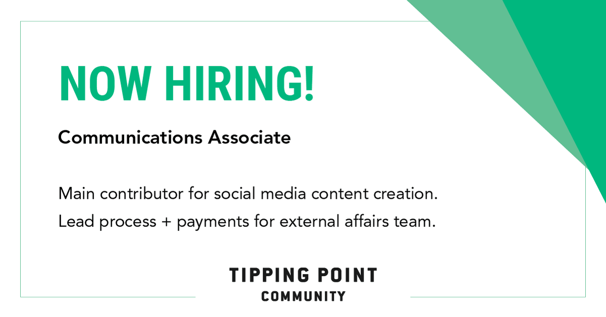 Tipping Point is searching for a Communications Associate to join our external affairs team. Please share widely with your networks! Learn more + apply today: https://tippingpoint.org/jobs?gh_jid=5921733002 …pic.twitter.com/eFvFzIUUZG