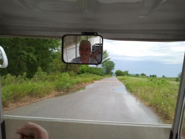 Driving a golf cart down the Leslie Spit with @woodreauxpic.twitter.com/nlzHrLPW