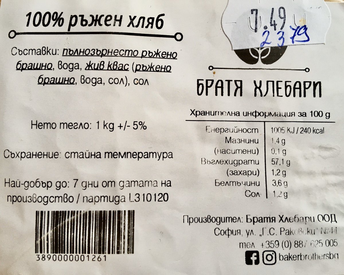 7.50 за кило самун от Въоръжени Братя Хлебари.