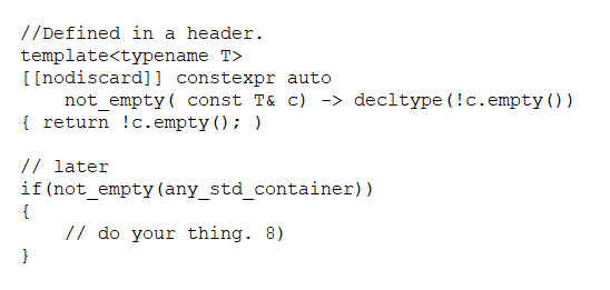 I dislike the pattern of adding `empty` to containers. When I want to check a container has things having to do the double negative `!empty()` is distracting. I fall back to `.size() > 0` a lot of the time because of this. clang-tidy-be-damned.