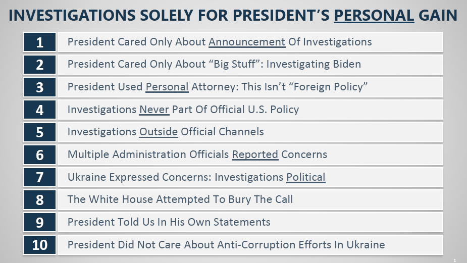 President Trump requested the two sham investigations into the 2016 election and the Bidens for his own personal, political gain. This was never about corruption. Here's how we know:pic.twitter.com/3iiwtc40wU