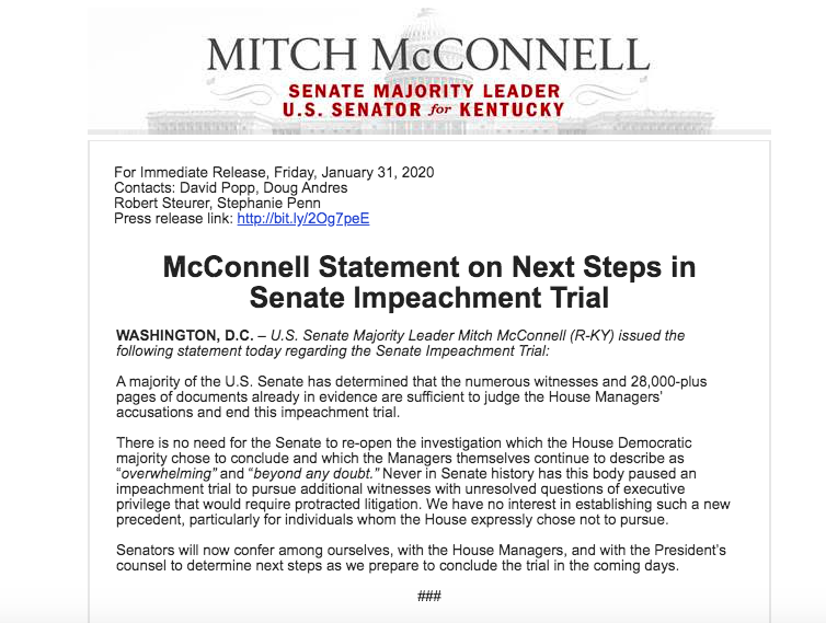 A notable line from Marco Rubio: "Just because actions meet a standard of impeachment does not mean it is in the best interest of the country to remove a President from office."https://twitter.com/marcorubio/status/1223301981613297664 …