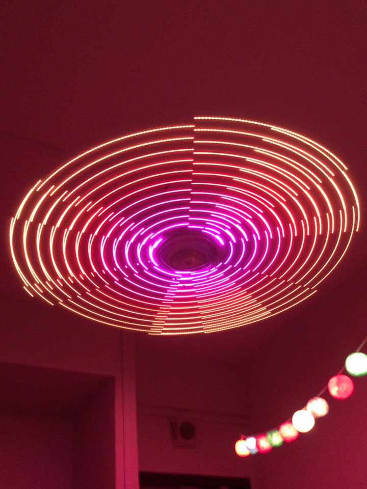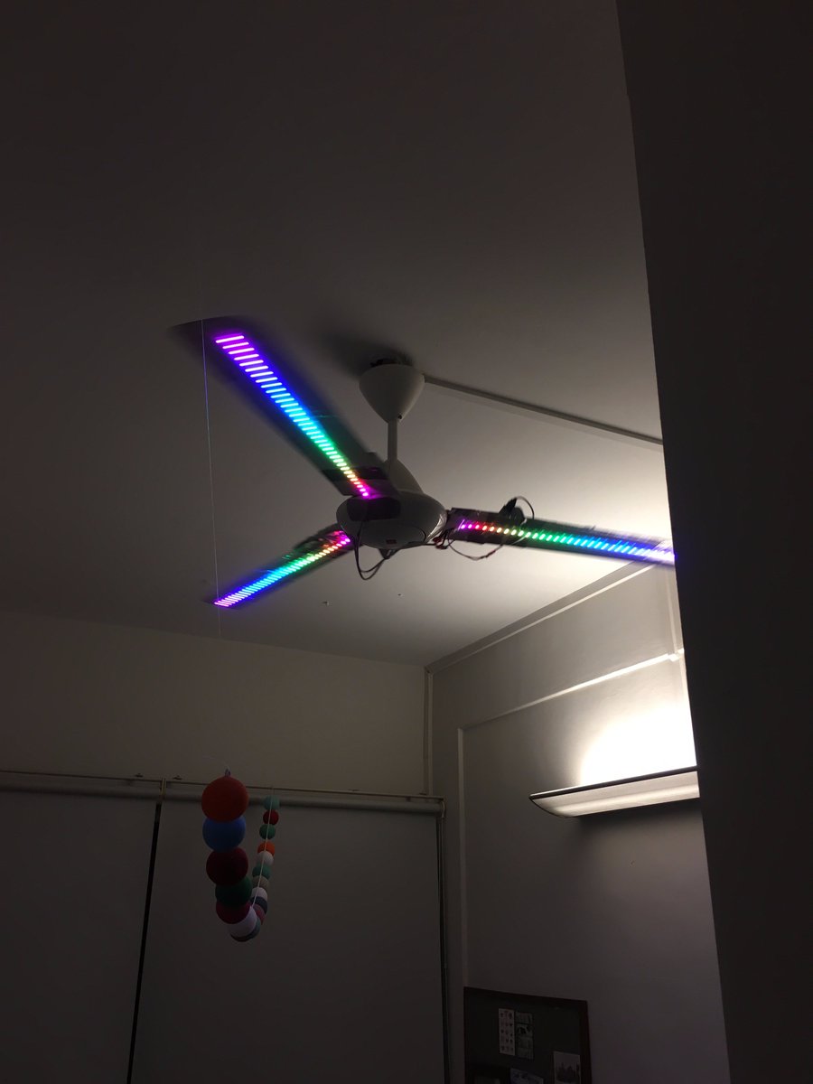 The one advantage of not having AC in my S'pore room is that I have a ceiling fan that I can hack with 105 Neopixels!pic.twitter.com/Y7f8wS2e0q